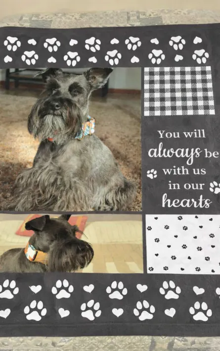 This blanket also makes a beautiful piece of pet memorial home décor. Drape it over your sofa, lay it across your bed, or place it in a special corner dedicated to your pet.